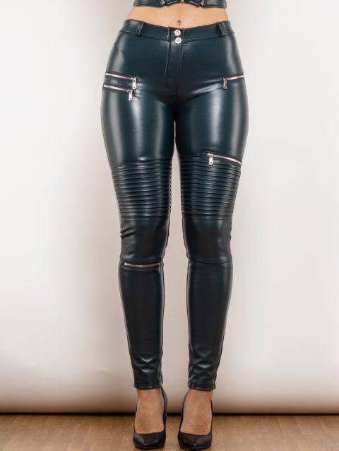 Shascullfites Melody Blue Leather Tapered Pants Motor Leather Trousers Shaping Leather Leggings With Zippers