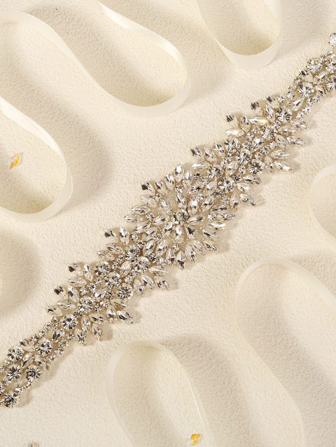 Silver Bridal Wedding Waistband Sparkling Crystal Handmade Sash for Women Wedding Supplies Jewelry Accessories