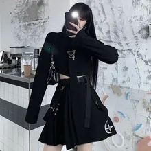 Spring Harajuku Streetwear Two-Piece Skirt Spring Oversize Punk Chain Ribbon Skirts Women 2 Piece Suit For Female
