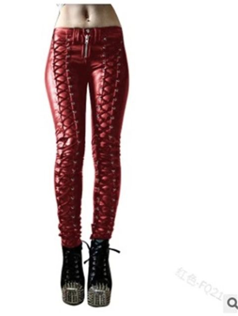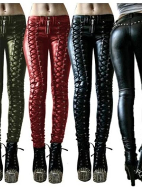 Street Gothic Straps PU Leather Pants Harajuku Vintage Solid Color Mid-waist Casual Pencil Trousers Tide 2022 Autumn Winter New